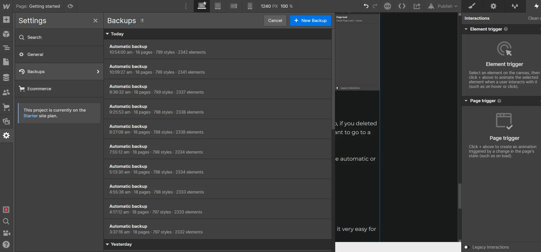 If something goes wrong, for example, if you are not liking where the website is going to, if you deleted some critical classes that were required to make the Template look nice, or if you just want to go to a previous version for any reason, you can always go to the Backups section.